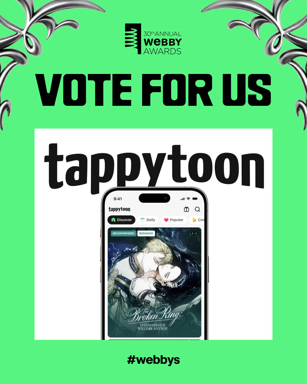 Tappytoon has been selected as a Webby Awards Nominee, placing in the top 11% among 13,000+ global projects.