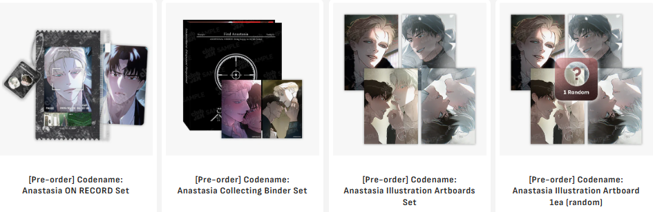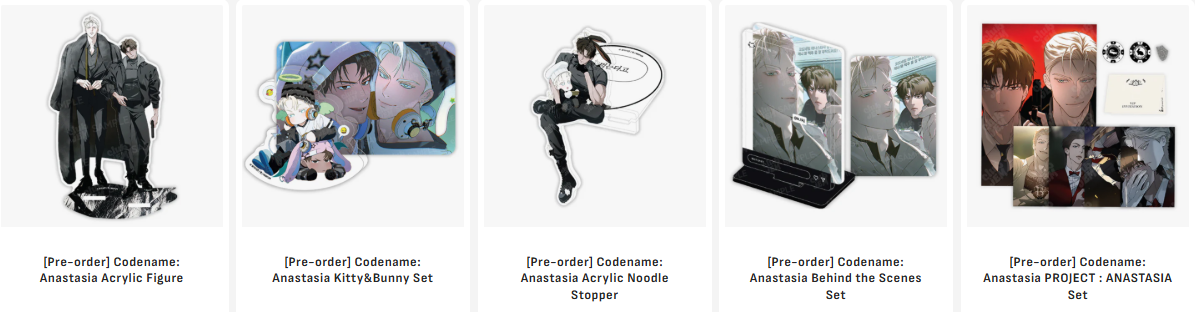Tappytoon’s Official Merch Store, Club JEM, presents nine special Codename: Anastasia merch sets. [Pre-Order Here]